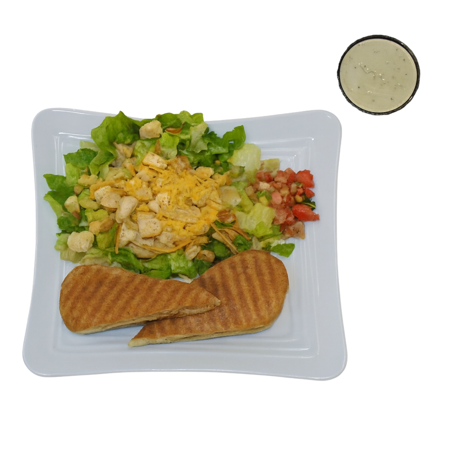 Caribbean ligth completa mix santa fe ,fritura natural delgada pechuga de pollo natural queso cheddar ,ensalada de papa amarilla ranch